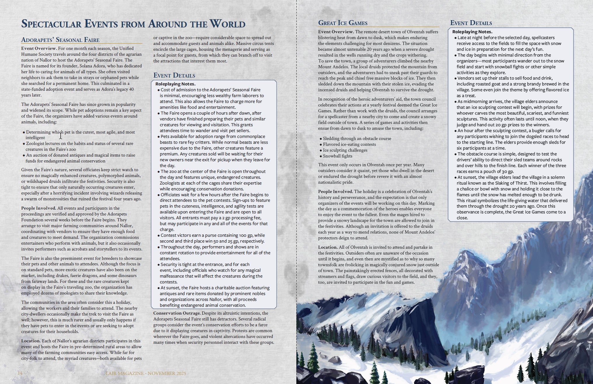 Spectacular Events from Around the World - Two special events: Adorapets' Seasonal Faire and Great Ice Games.