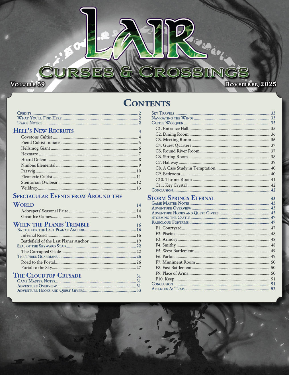 Lair Magazine is a monthly publication full of GM resources such as adventures, digital maps, traps, puzzles, monsters, encounters, magic items, and more. Lair Magazine comes in two versions, one for 5e and one for Pathfinder 2.