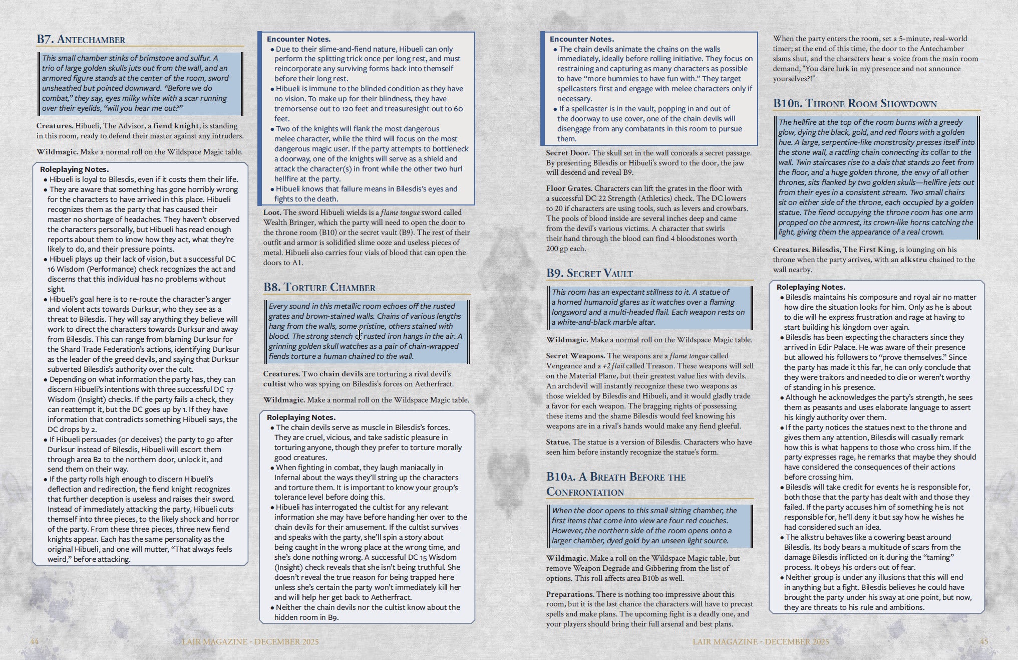 In a realm where magic twists and refuses to obey the laws of the universe, two fiendish rulers have taken refuge away from the halls of hell. Taking them out, one at a time, is vital to ensuring peace for the Material Plane and the characters’ home. The first of these is a king who suffers both gains and losses. . .