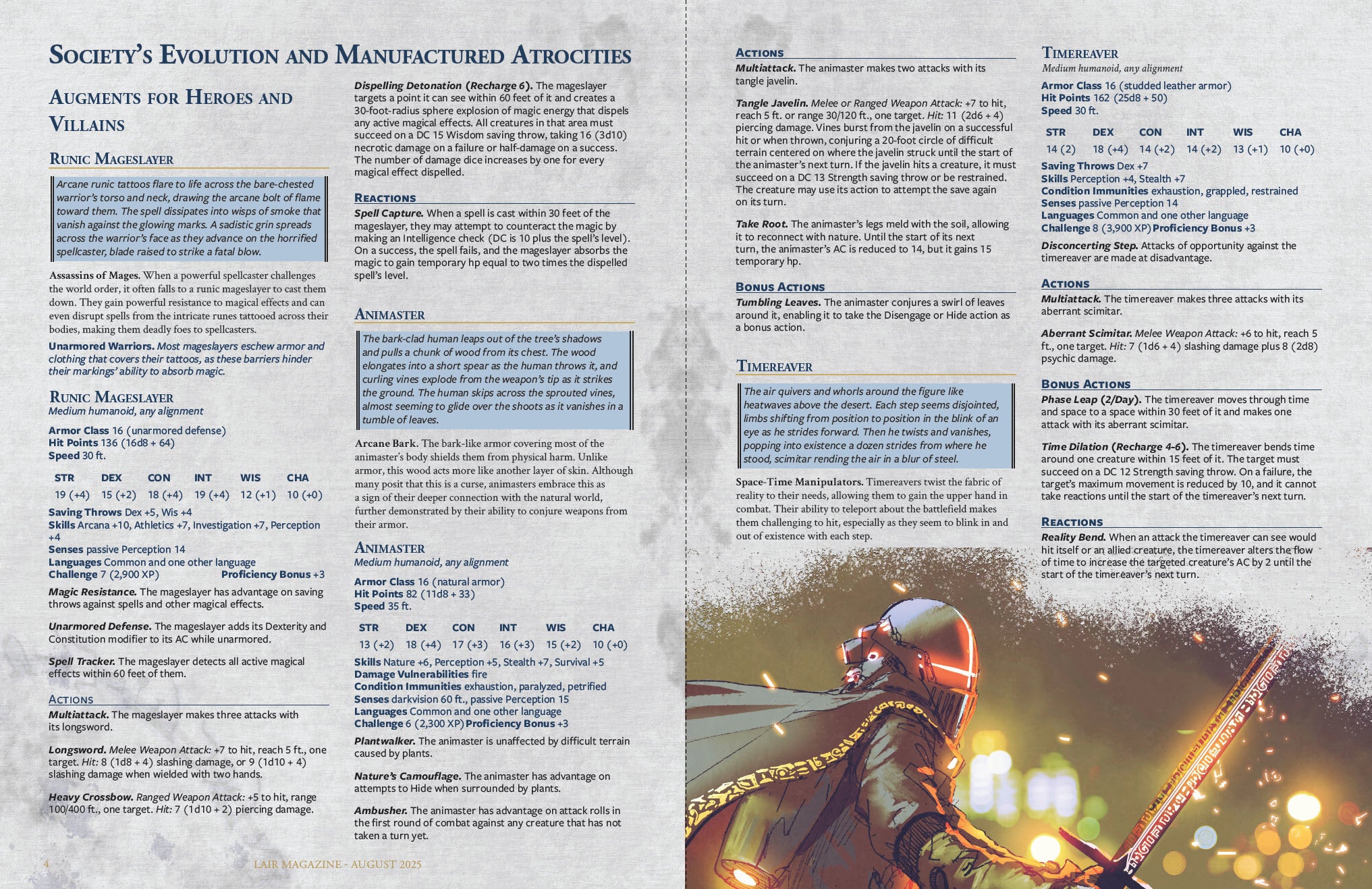 Society's Evolution and Manufactured Atrocities - Ten monsters: runic mageslayer, animaster, timereaver, empathiter, beastlord, warmaton legionnaire, warmaton challenger, warmaton trespasser, warmaton slinger, and warmaton fortress.