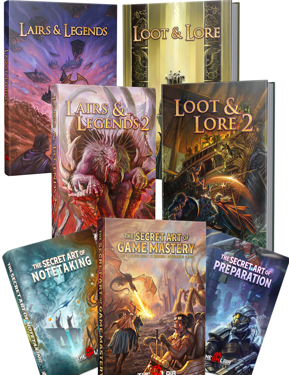 The Secret Art of Preparation. Brings to your fingertips the actual templates and guides that the DM Lair team uses to prepare games, Lair Magazine, and more. Designed as a three-ring binder, it's intended for you to write directly into for your entire campaign!
